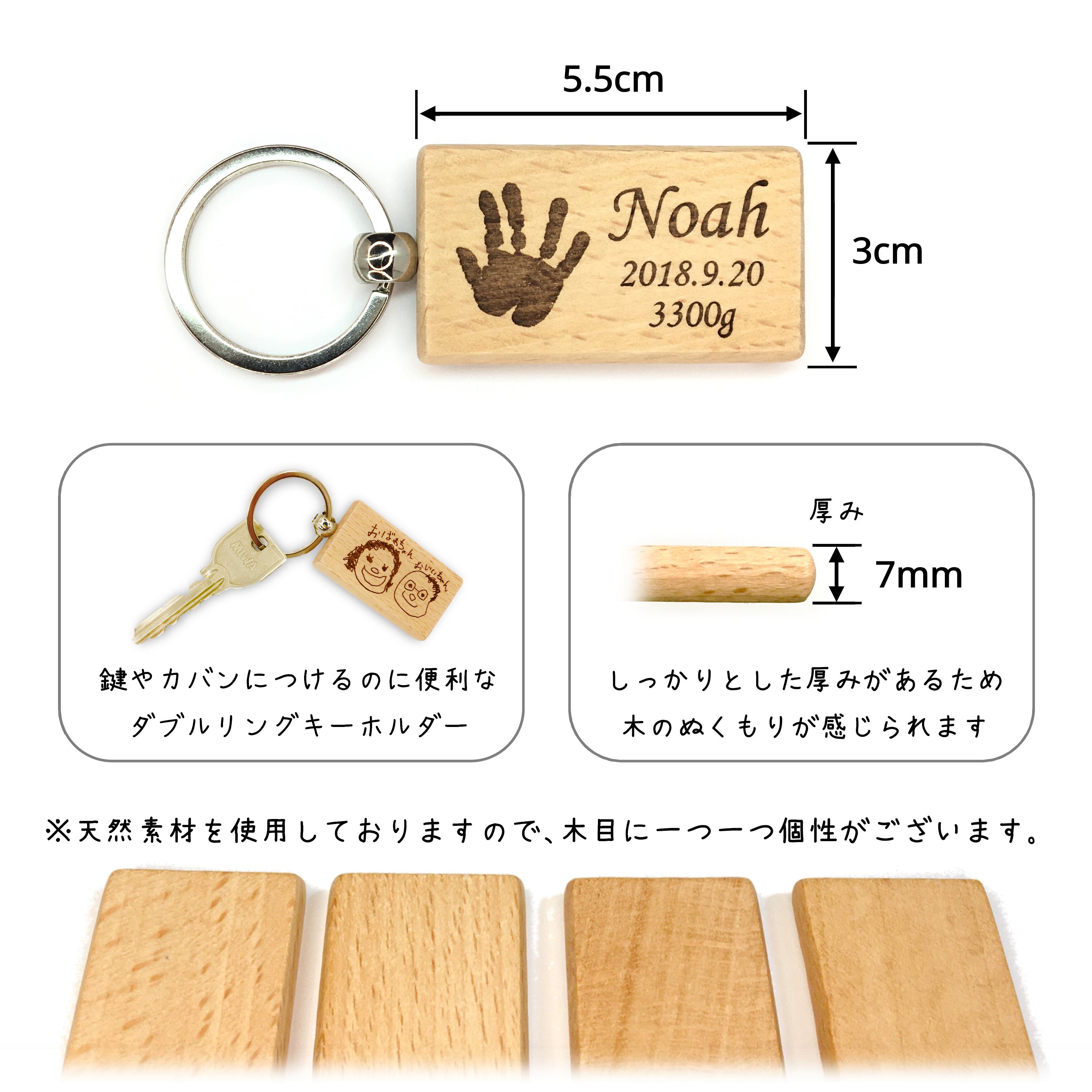 実際に押印していただいた手形(足形)を縮小し、可愛らしいキーホルダーに仕上げました!!