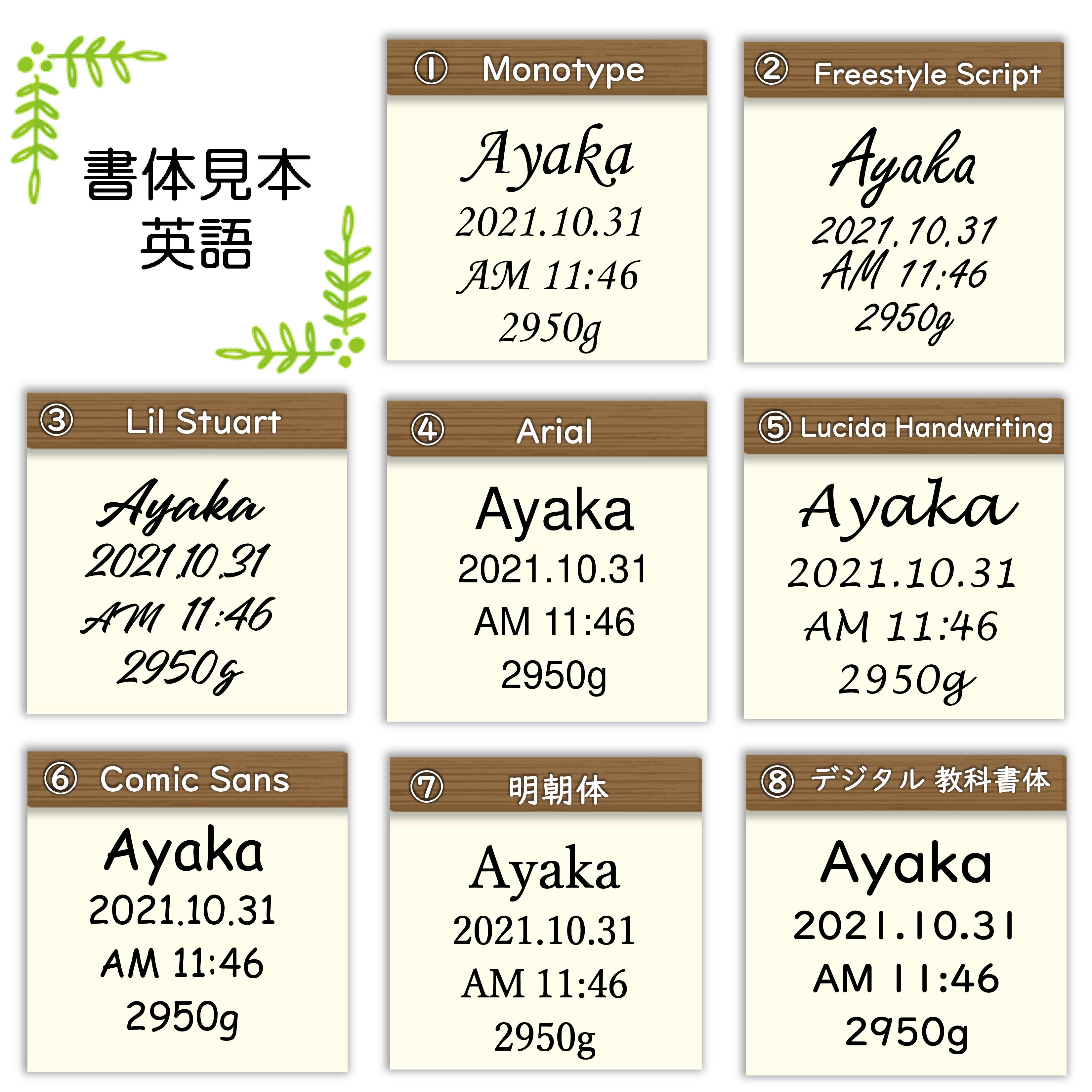 参考画像より書体をお選びいただけますが、ご希望がない場合は見本と同じ書体となります。