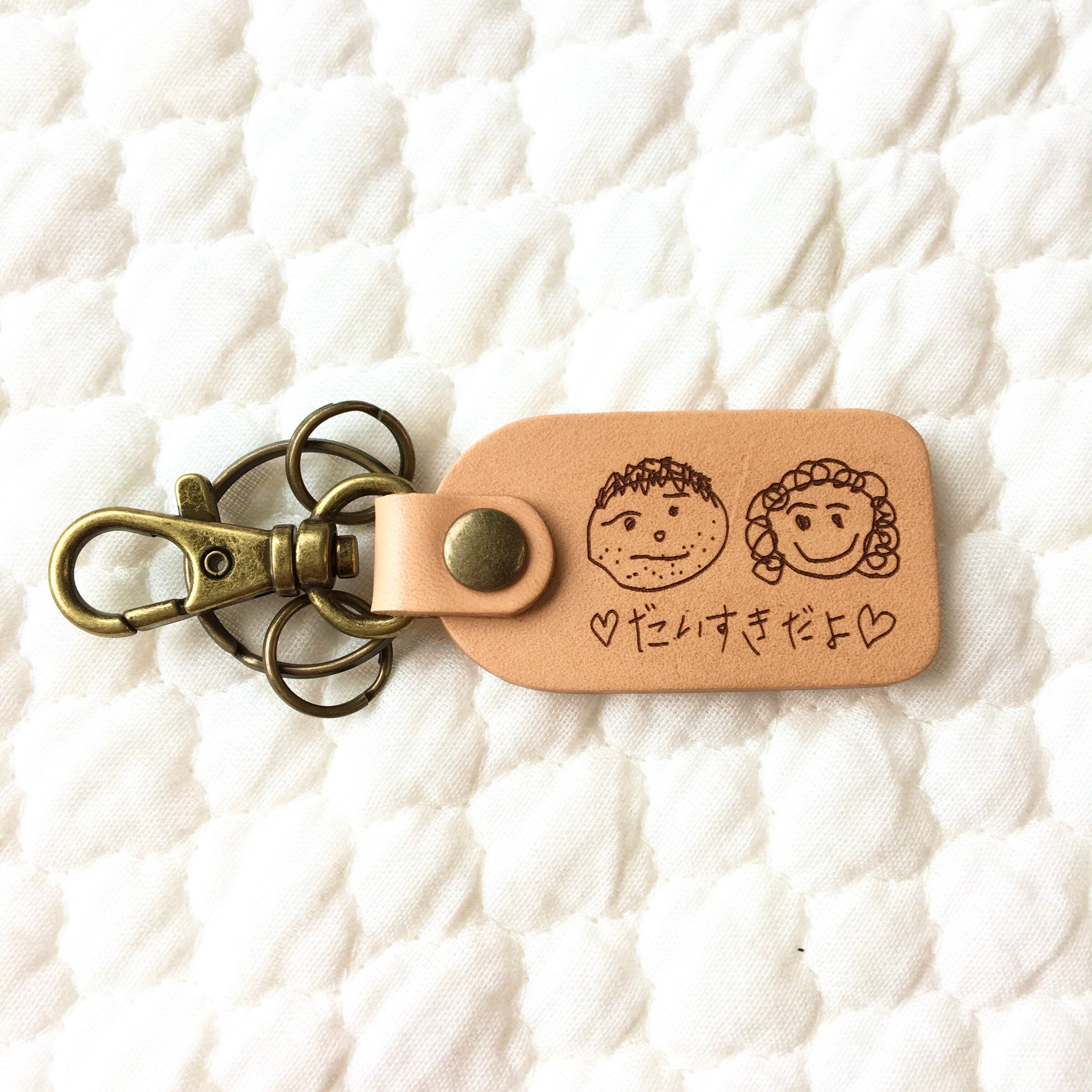 【本革】オリジナルキーホルダー 子どものお絵描きイラスト刻印